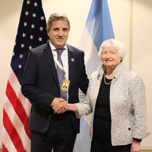 En ese marco, la secretaría del Tesoro de los Estados Unidos, Janet Yellen, se reunió con el ministro y destacó los esfuerzos del país para afrontar la crisis vía X (ex Twitter): “Me reuní con el ministro Luis Caputo para discutir el progreso de Argentina en materia de desinflación y los esfuerzos para apoyar a los más vulnerables”