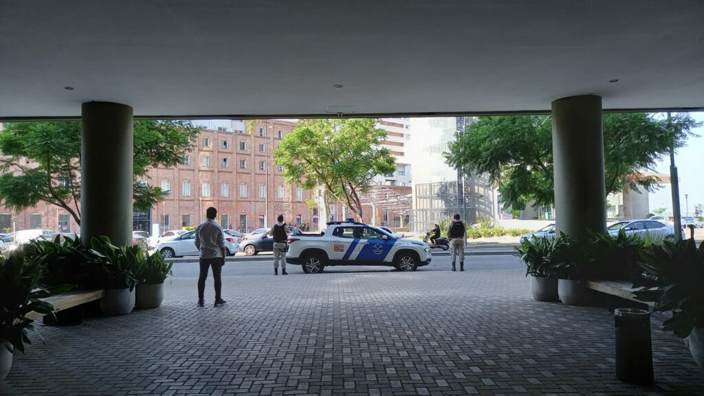Personal de seguridad privada de los edificios de Puerto Norte le dijeron a RedBoing que la policía está más activa en las patrullas. Con el correr de los minutos, los efectivos detuvieron a otra persona y ambos fueron trasladados a la comisaría más cercana.