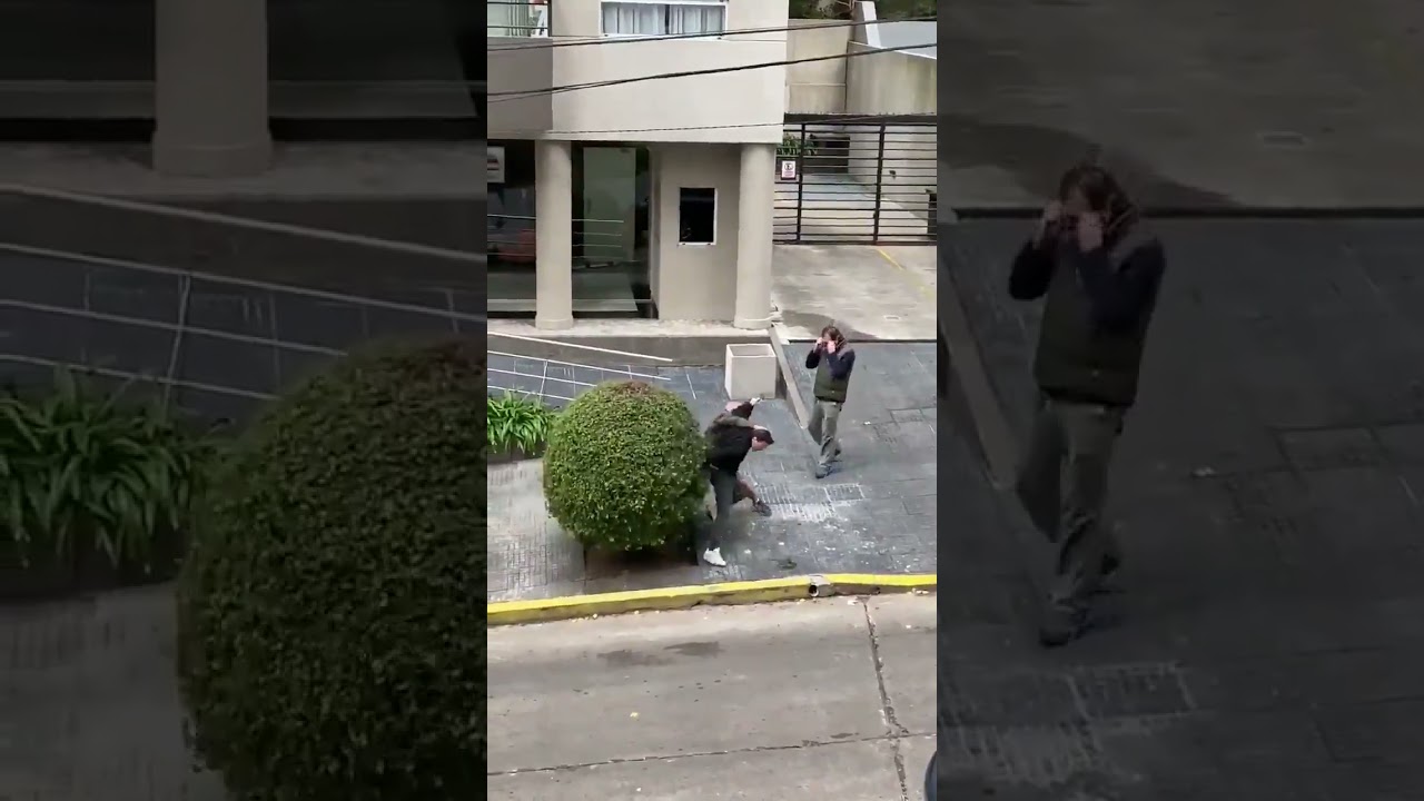 La violencia desatada es impactante. A plena luz del día y a la vista de sus vecinos (incluso uno de ellos que nada hacía para separarlos), los hombres se tomaron a golpes de puño de un modo completamente brutal.