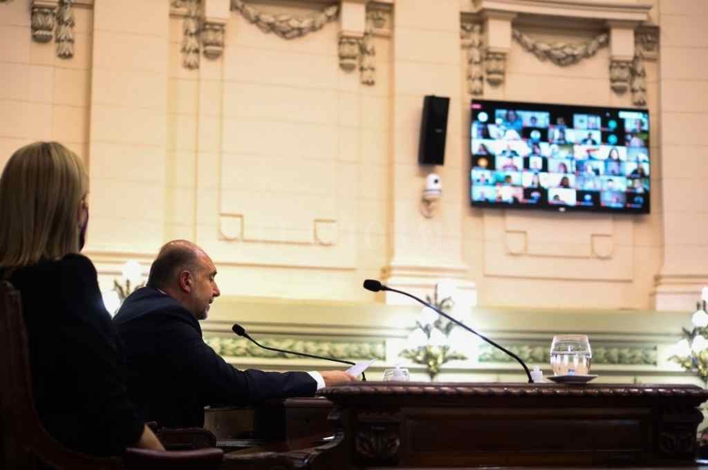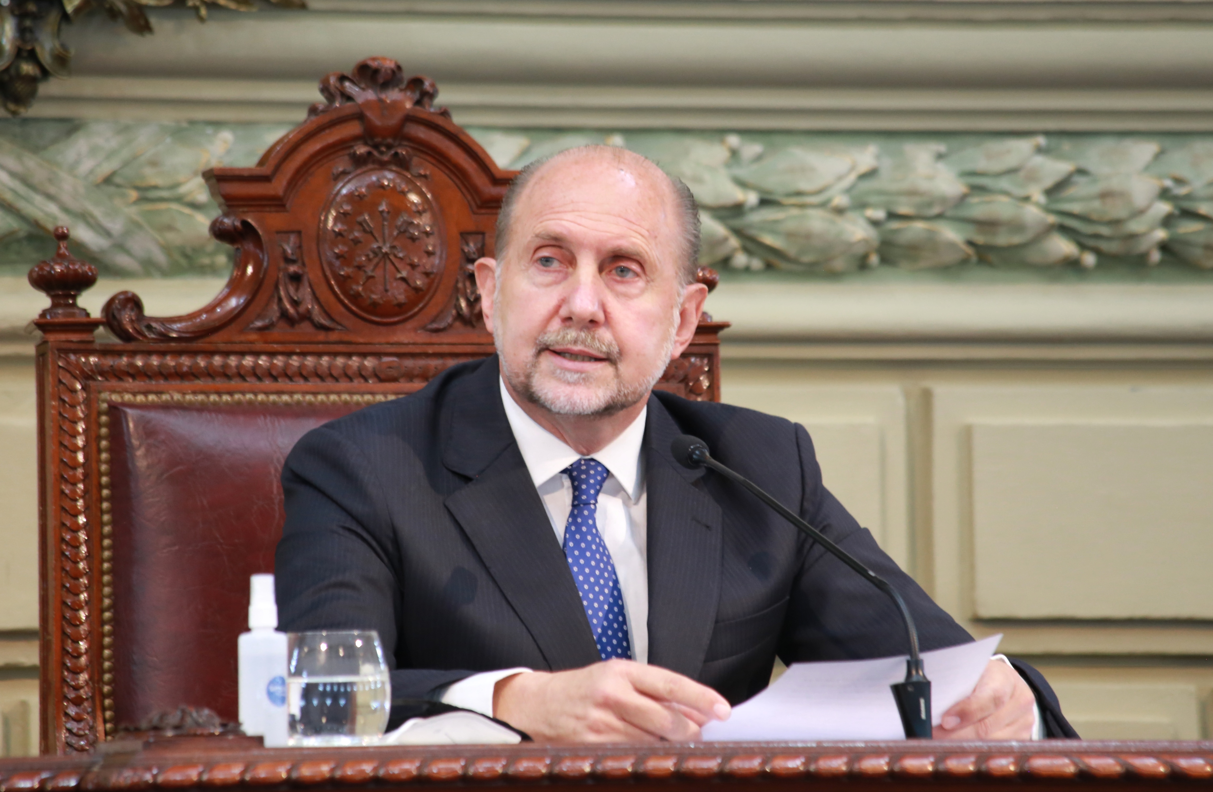 El Gobernador Omar Perotti habla en el marco de la apertura del 139° período de Sesiones Ordinarias de la Legislatura de Santa Fe. El mandatario provincial brinda su informe anual ante la Asamblea Legislativa, dentro de un marco de expectativas por los anuncios del Gobierno de Santa Fe ante el aumento de casos de coronavirus.