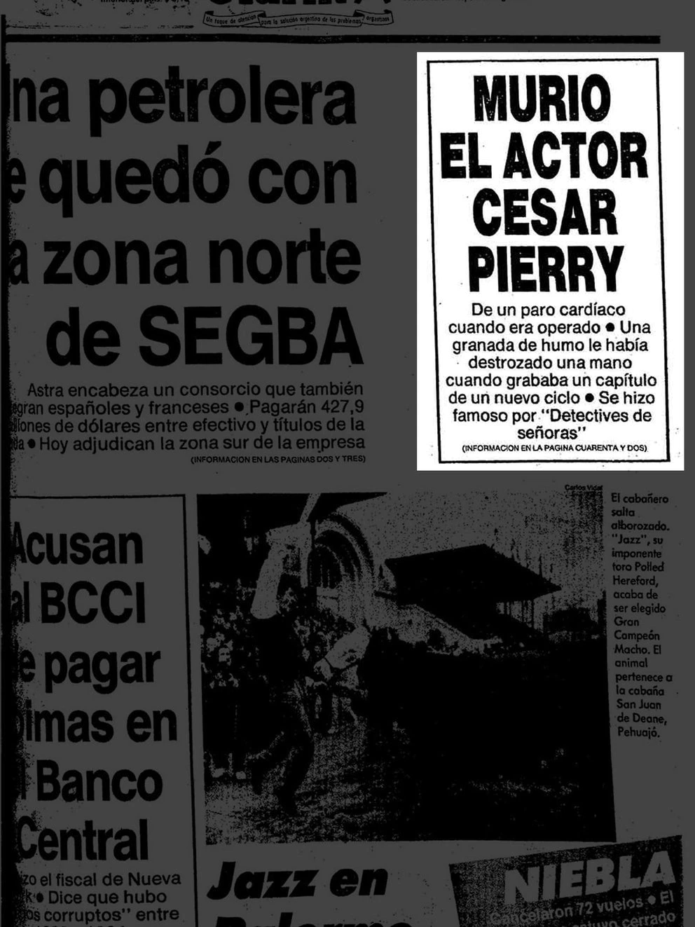 En la Argentina, existe un antecedente fatal, de una grabación que le costó la vida a un actor: en 1992 durante las grabaciones de la serie Mi socio imposible, a César Pierry -que en ese entonces tenía 37 años- le explotó una granada de humo en la mano, ocasionándole graves heridas. Murió el 29 de julio de ese año, 19 días después del accidente.