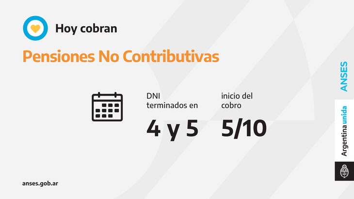 En el marco del Plan Argentina contra el Hambre del Ministerio de Desarrollo Social, la ANSES acompaña con el pago del programa Alimentar. Hoy cobran Madres de 7 hijos que perciben PNC con documentos finalizados en 4 y 5, no poseen la tarjeta plástica y reciben el dinero en la misma cuenta de la prestación.