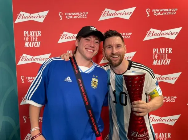 El cantante cordobés se encuentra disfrutando de la Copa del Mundo y logró estar con el crack rosarino después de una victoria importante.