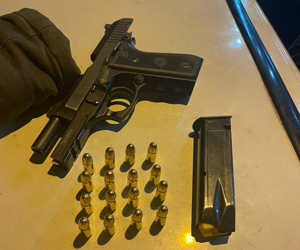 Con el fin de requisar a los ciudadanos , como así también el interior del rodado, los efectivos hicieron descender a los mismos, visualizando debajo del asiento del acompañante una pistola marca Taurus, calibre 9 milímetros con 1 munición en recamara y 15 en el cargador, lista para ser utilizada.