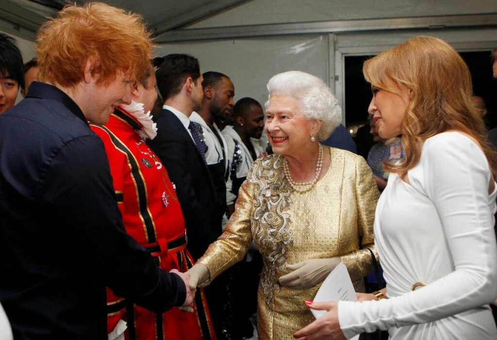 Como tributo a la reina y su marido Felipe II, y mientras una pantalla gigante reflejaba imágenes de la pareja, Sheeran y su guitarra sonaron al compás de su éxito “Perfect“.