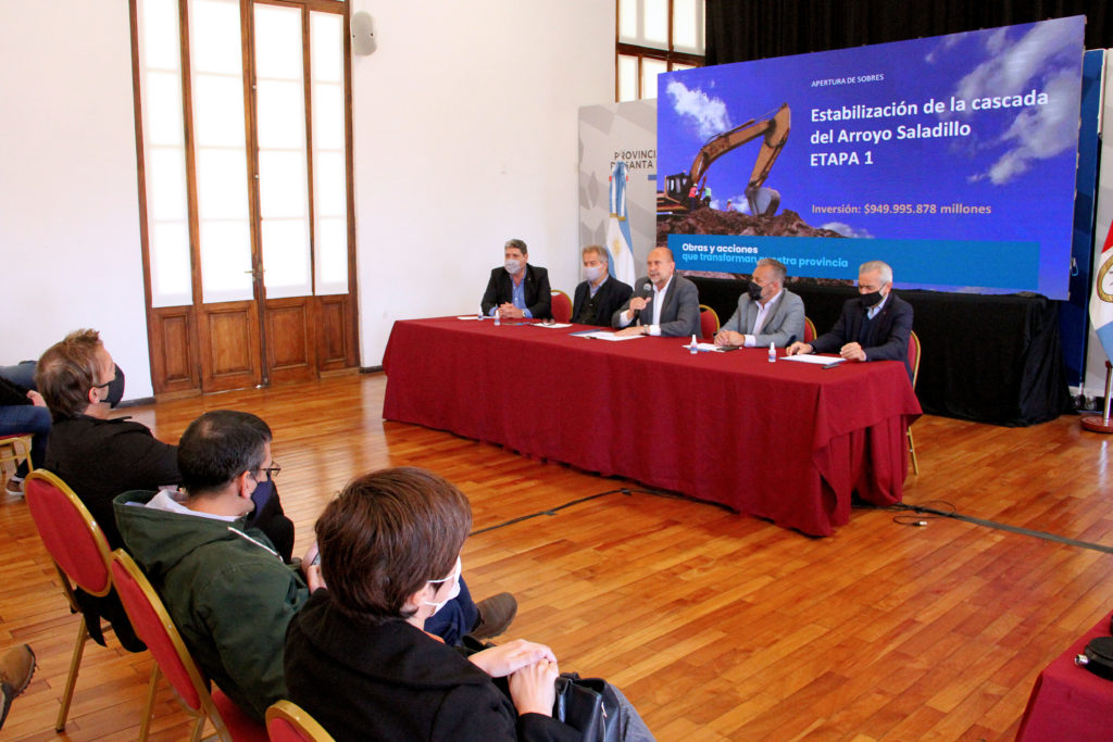 El gobernador Omar Perotti encabezó este viernes la presentación de las ofertas económicas para las obras de estabilización de la Cascada del Arroyo Saladillo. El proyecto, que se llevará a cabo en el marco de la recuperación del Parque Regional Sur, contará con una inversión oficial de $949.995.878.