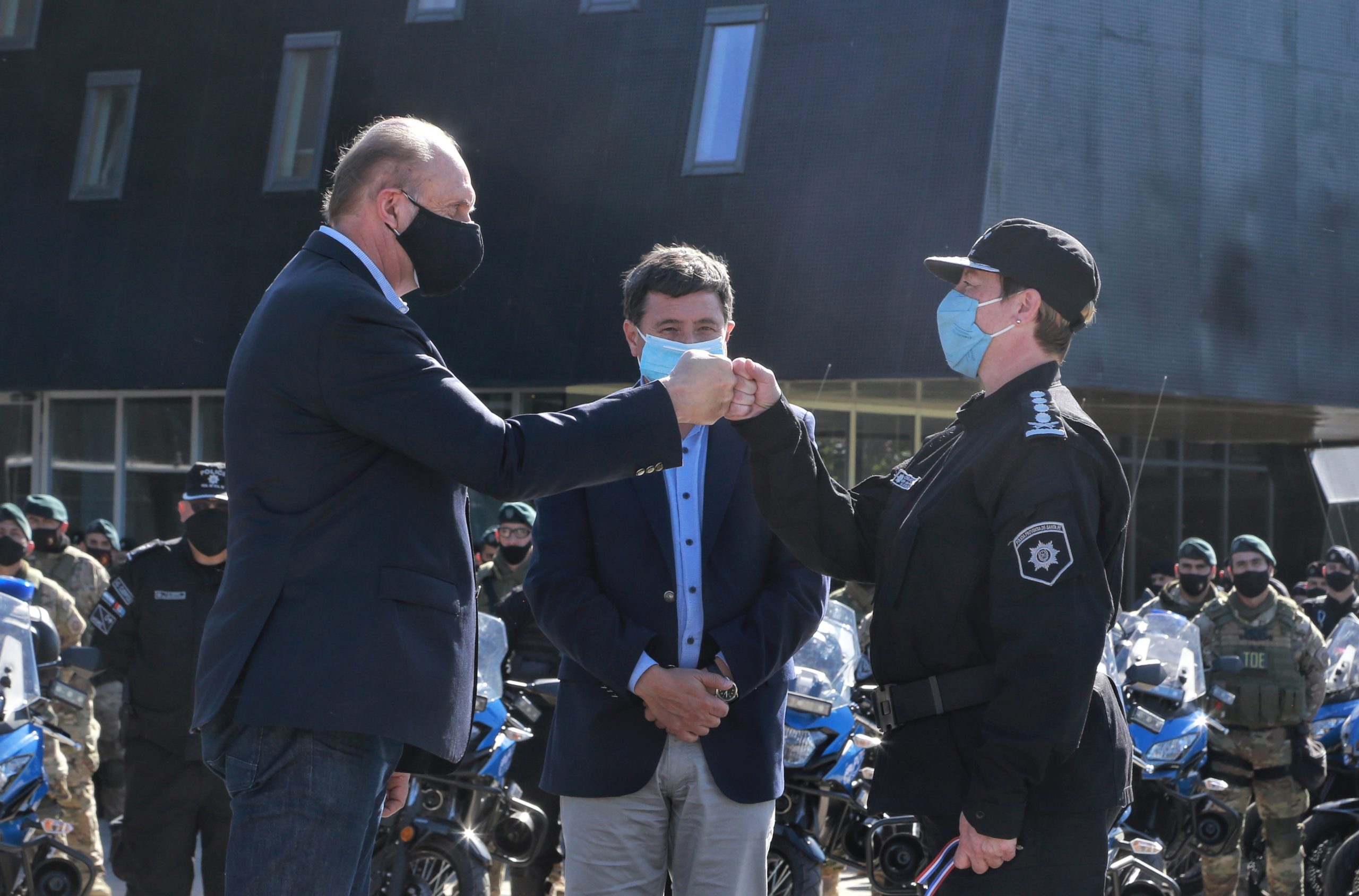 En ese sentido, el mandatario provincial añadió: “Esto tendrá concreciones importantes en este primer semestre. No habrá solamente más motos y vehículos, sino también más equipamiento tecnológico. Es parte del enfoque que le estamos dando a la seguridad, porque vemos este tema de una manera integral. Por eso nos acompaña hoy el ministro de Desarrollo (Social de la Nación, Daniel Arroyo), con quien venimos trabajando: Nación, provincia y municipios estamos codo a codo, tratando de enfrentar esta difícil situación social que vive el país y de la que nuestra provincia no es ajena”.