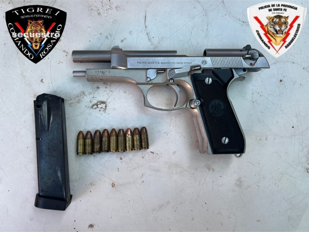 Al realizar el rastrillaje en el sector donde el evadido arrojó el elemento, la policía logró el secuestro de una pistola calibre 9 milímetros marca Beretta. El arma se encontraba en condiciones críticas de uso: tenía un cartucho en la recámara, el martillo montado y el cargador completo con ocho municiones adicionales. El material fue trasladado a la seccional correspondiente por razones de jurisdicción, mientras que el gabinete criminalístico trabaja sobre el arma para determinar si fue utilizada en hechos delictivos recientes en la zona.