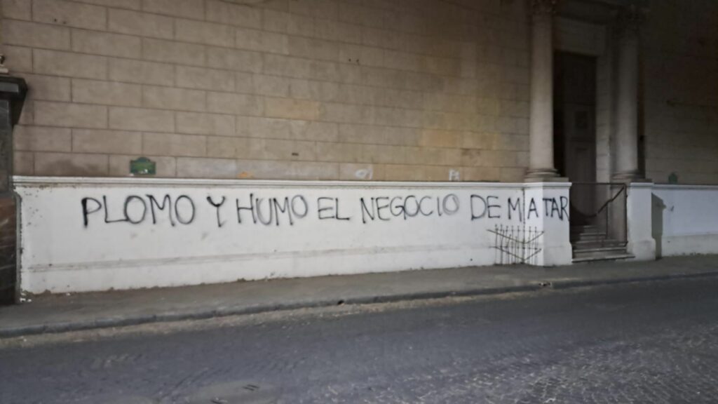 “Plomo y humo, el negocio de matar”, fue la cita que se repitió en los distintos establecimientos en los que se realizaron las pintadas.