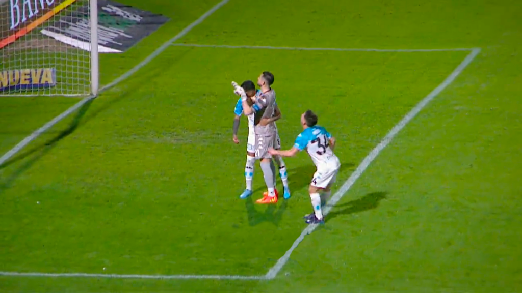 Luego del pitazo final, el arquero de Racing, Gabriel Arias, le realizó gestos a la hinchada del Calamar, algo que generó un revuelo entre los jugadores y la hinchada.