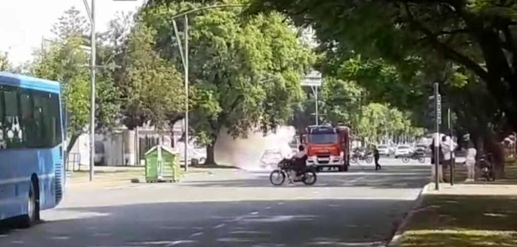 Según las imágenes enviadas por un oyente de Radio Boing, el auto se encontraba mano al centro cuando comenzó a salir humo y posteriormente fuego. La zona estuvo cortada por un tiempo mientras que el personal normalizó la situación.