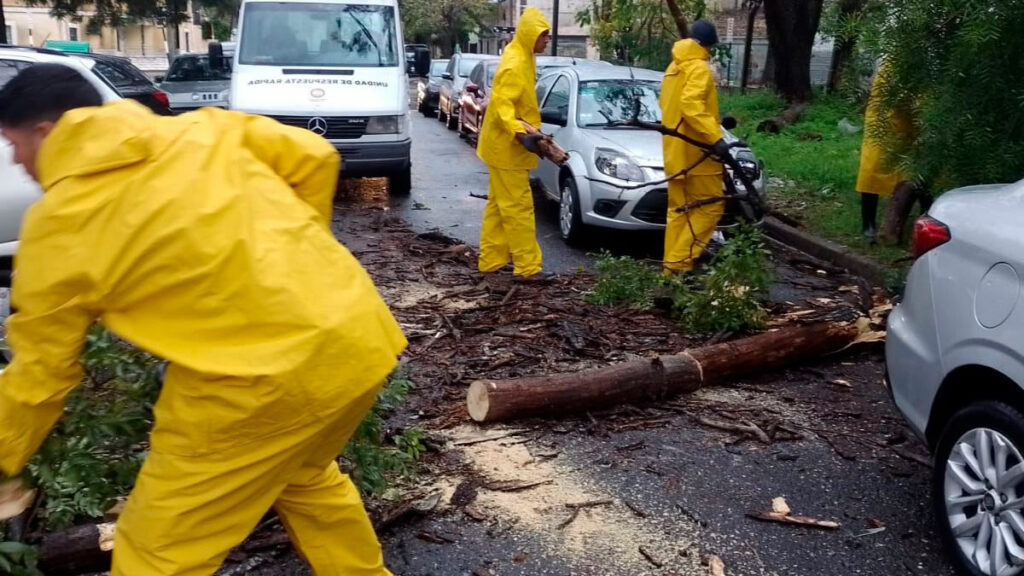 Por su parte, en diferentes zonas de los barrios rosarinos, los árboles cedieron y terminaron cayendo sobre las calles. Personal de Defensa Civil ya se encuentra quitando los restos.