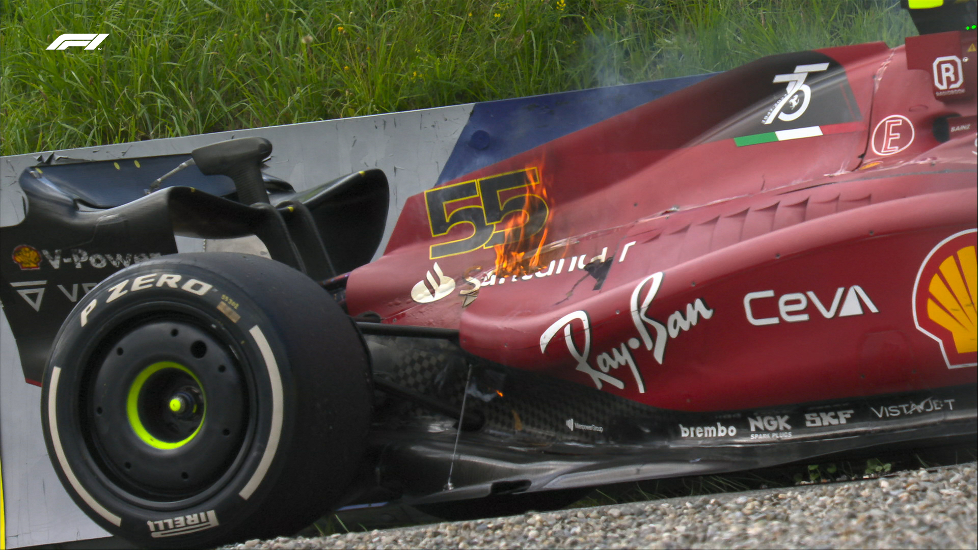 Si bien en un principio su monoplaza simplemente parecía haber perdido potencia, una vez fuera del circuito comenzó la preocupación real. Ya sin chances en la carrera, Sainz esperó a un costado que acudieran los mecánicos de Ferrari para trasladar el auto a boxes, sin darse cuenta que estaba comenzando a incendiarse.