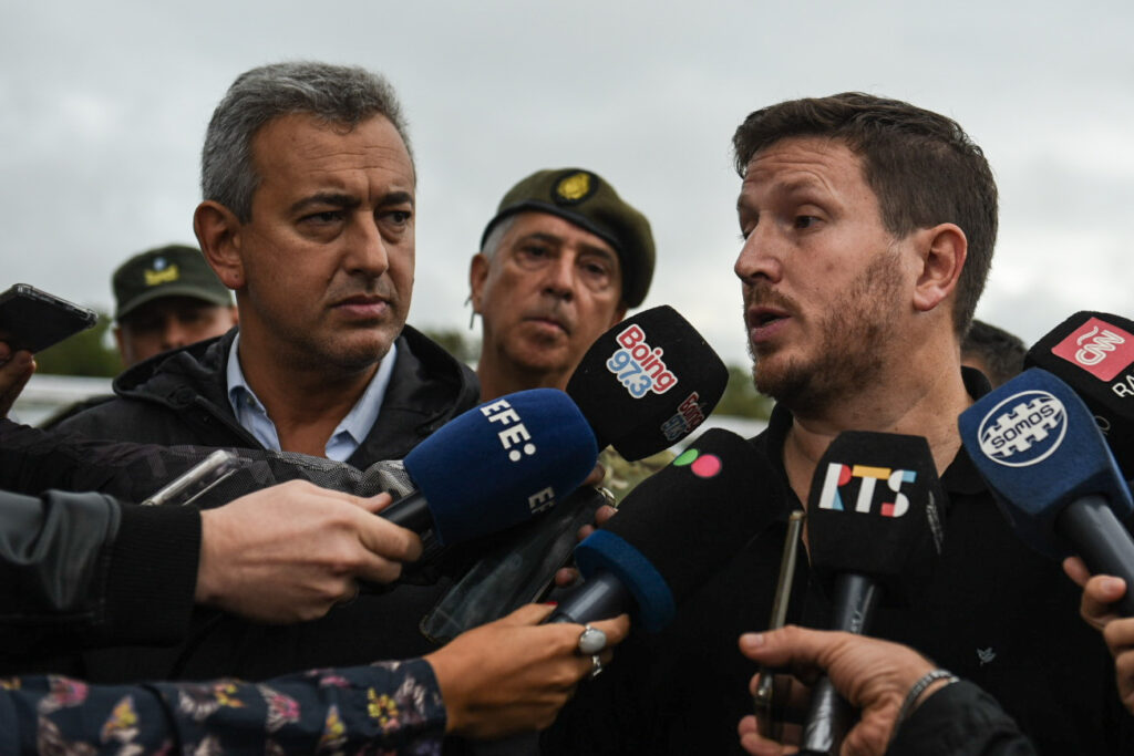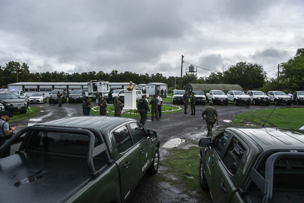 “Estamos recibiendo el apoyo logístico de las fuerzas armadas, una primera tanda de ese apoyo que se va a complementar en los próximos días también con helicópteros, drones, camiones y para complementar a estos 22 móviles que vinieron tanto del Ejército como de las Fuerzas Armadas”, comenzó diciendo Angelini.