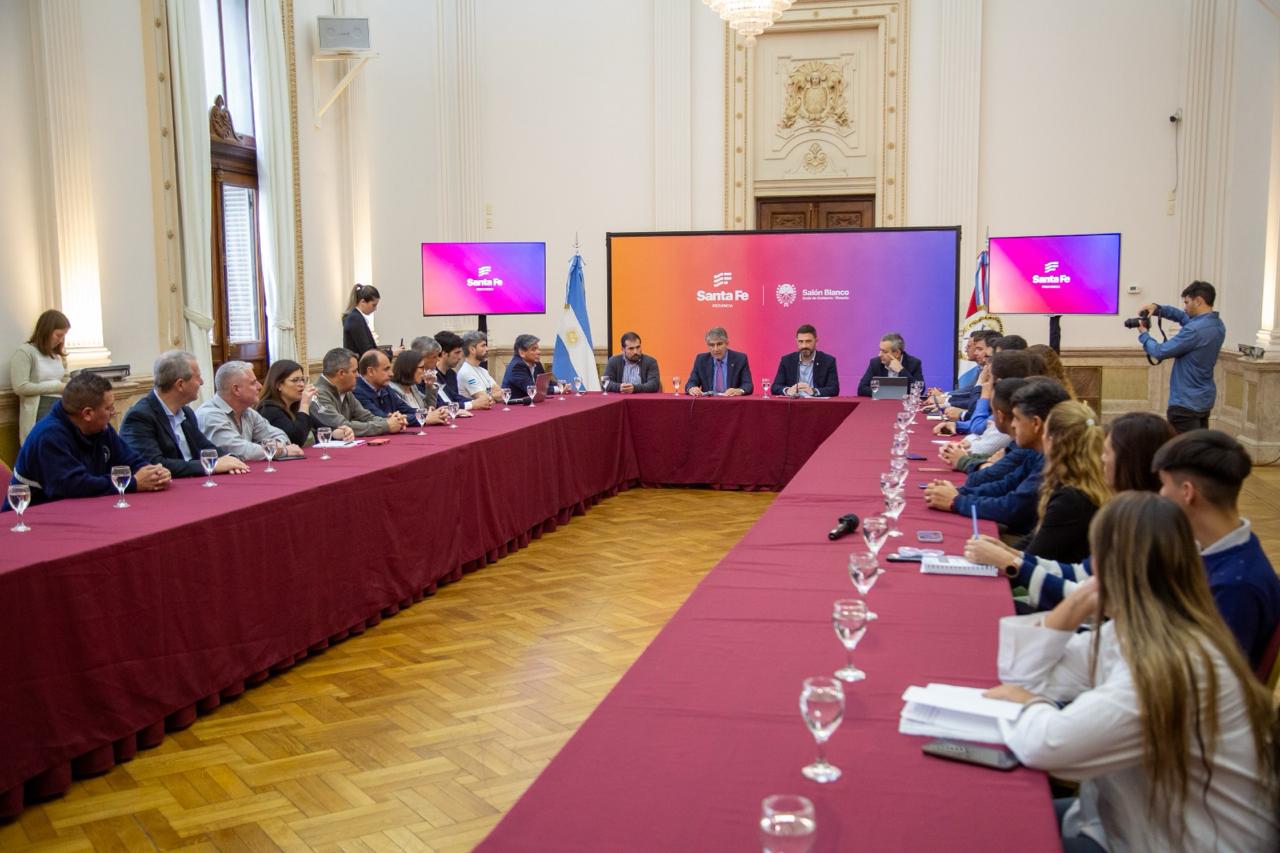 Durante la actividad, llevada a cabo en la sede del gobierno provincial en Rosario, participaron también el senador del departamento Rosario, Ciro Seisas; el secretario provincial de Biodiversidad, Alejandro Luciani; los funcionarios de la Subsecretaría de Ambiente de Nación, Fernando Buet Costantino y Gustavo Fracchi; y el intendente de Rosario, Pablo Javkin. También asistieron los intendentes Villa Gobernador Gálvez, Alberto Ricci; de San Lorenzo, Leonardo Raimundo; de Fray Luis Beltrán, Mariano Cominelli; de Capitán Bermúdez, Daniel Cinalli; de Granadero Baigorria, Adrián Maglia; de Villa Constitución, Jorge Berti; de Pueblo Esther, Martín Gherardi; y de Arroyo Seco, Daniel Tonelli; y los presidentes comunales de Timbúes, Antonio Fiorenza; de Alvear, Carlos Pighin; de General Lagos, Estaban Ferri; de Fighiera, Rodolfo Ángel Stangoni; de Pavón, José López.