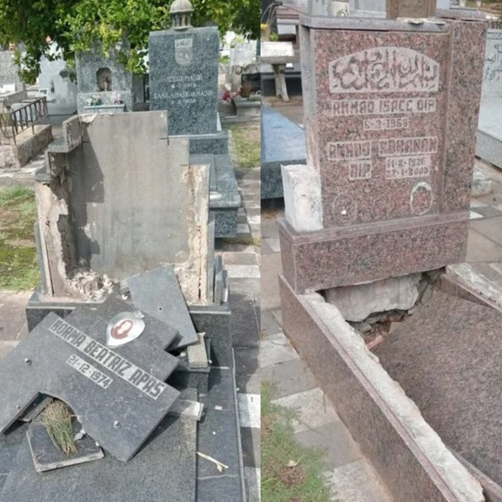 Las tumbas del ex presidente Carlos Saúl Menem y su hijo Carlos Menem JR fueron profanadas y vandalizadas en el Cementerio Islámico de La Tablada. Más de 100 sepulturas resultaron dañadas y fueron objeto de hurto, según denunció la Asociación Árabe Argentina Islámica, propietaria y administradora del predio.