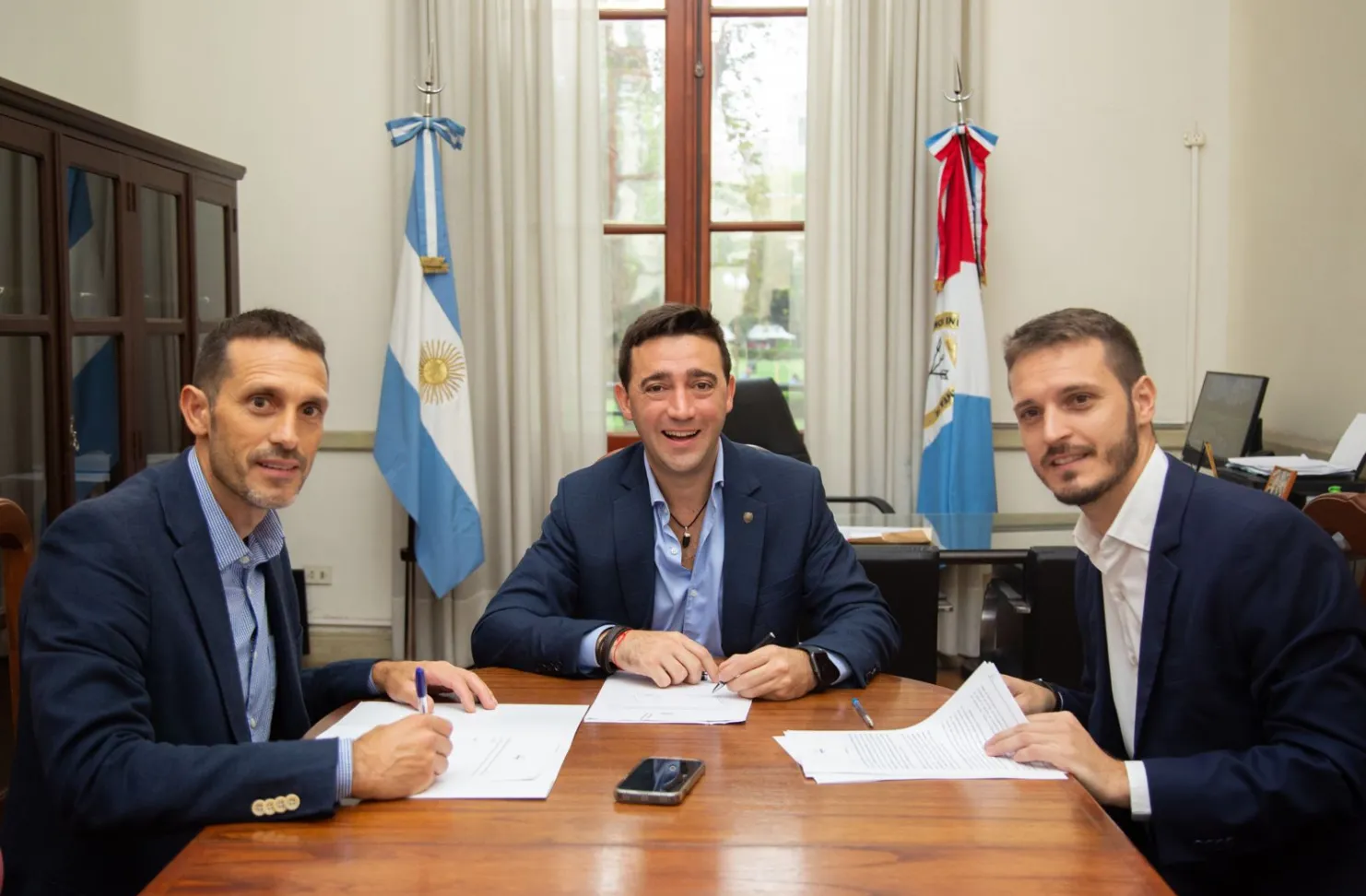 En primer término, el intendente de Pérez, Pablo Corsalini, firmó la adhesión a los programas “Protege Tu casa”, al RE.DE. y al de protección de entidades civiles a través del asesoramiento de la IGPJ.