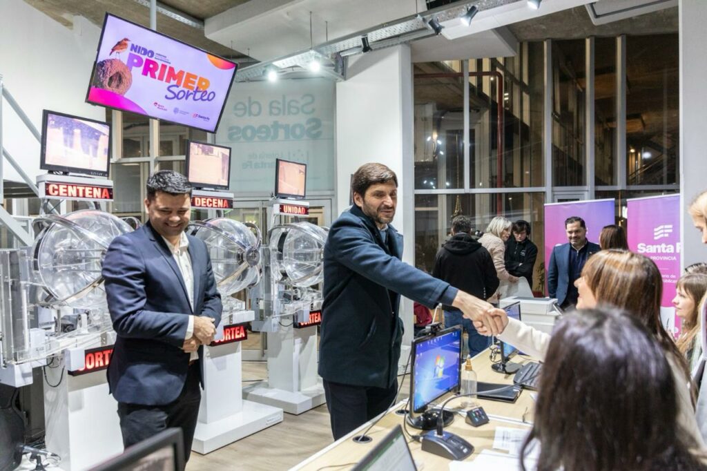 El gobernador de la provincia, Maximiliano Pullaro, participó este miércoles del primer sorteo de los Créditos Nido, una línea de préstamos hipotecarios que ofrecen el Gobierno provincial y el Banco Municipal de Rosario para construir, adquirir o finalizar viviendas con la tasa más baja del país, y que cuenta con una inversión de $ 60.000 millones. Tras la culminación del plazo de la primera etapa de inscripciones, 36.535 santafesinos de los 19 departamentos se anotaron para participar, de los cuales 29.507 (80,77%) calificaron para participar del primer sorteo para acceder al crédito.