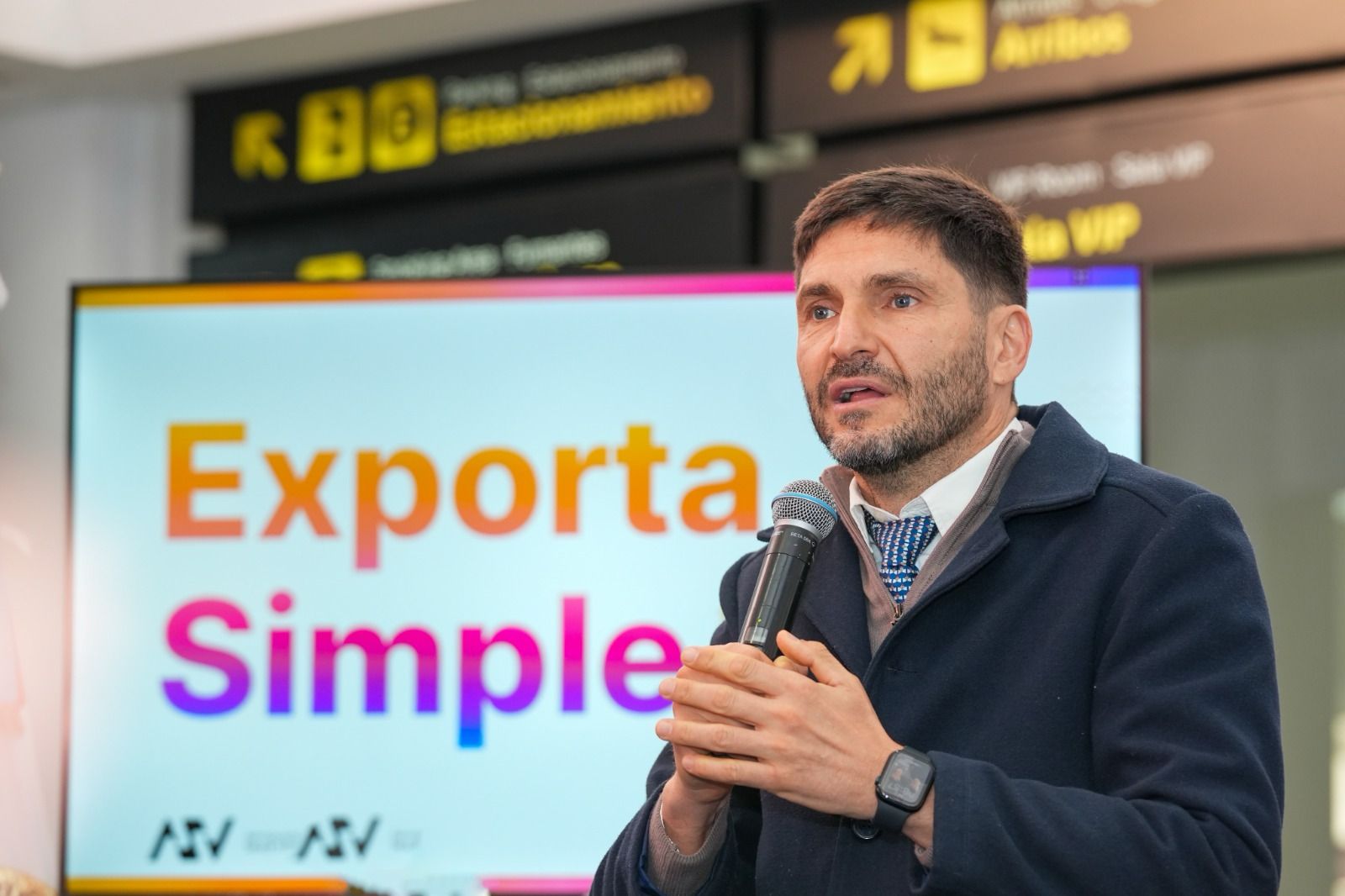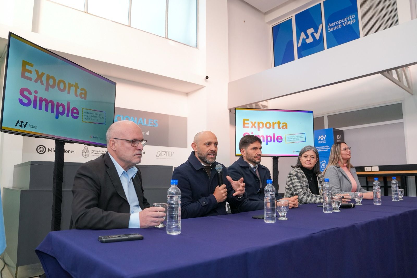 El gobernador Maximiliano Pullaro y el ministro de Desarrollo Productivo, Gustavo Puccini, presentaron este miércoles en el Aeropuerto Internacional de Sauce Viejo el programa Exporta Simple, que permitirá a más pymes santafesinas exportar desde esa terminal, reduciendo hasta un 50 % los costos, tal como ya sucede desde el aeropuerto de Rosario.