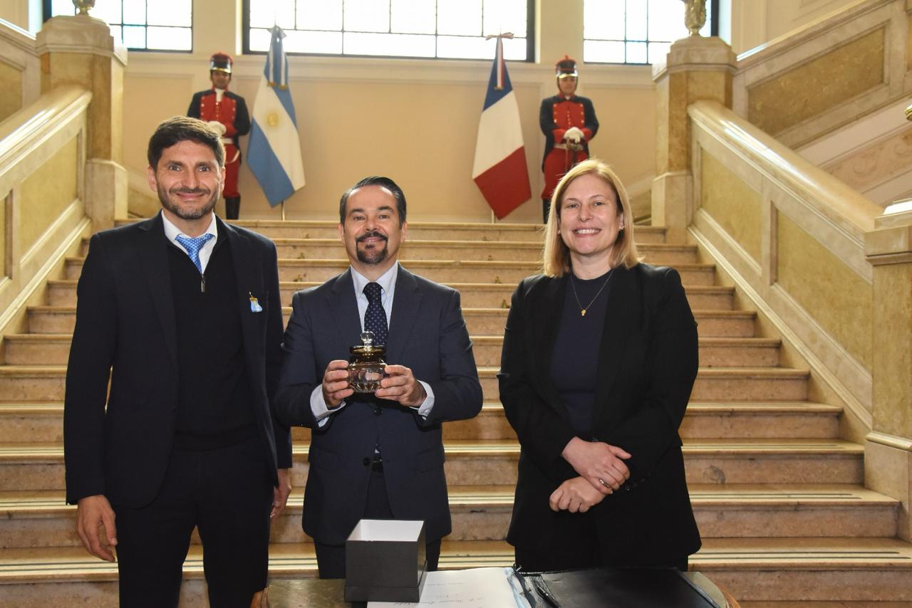 También estuvieron presentes la vicegobernadora Gisela Scaglia; el secretario General, Juan Cruz Cándido; y el secretario de Relaciones Internacionales, Claudio Díaz. Por su parte, el embajador francés estuvo acompañado por la jefa adjunta del Servicio económico regional en el Cono Sur (Argentina, Paraguay, Uruguay); Marie-Eva Becquet; el director del Instituto Francés de Argentina (IFA), Consejero cultural, Frédéric Depetris; el Coronel Agregado de Seguridad Interior, Hugo Louis; y el director general de la Alianza Francesa, Pascal Casanova.