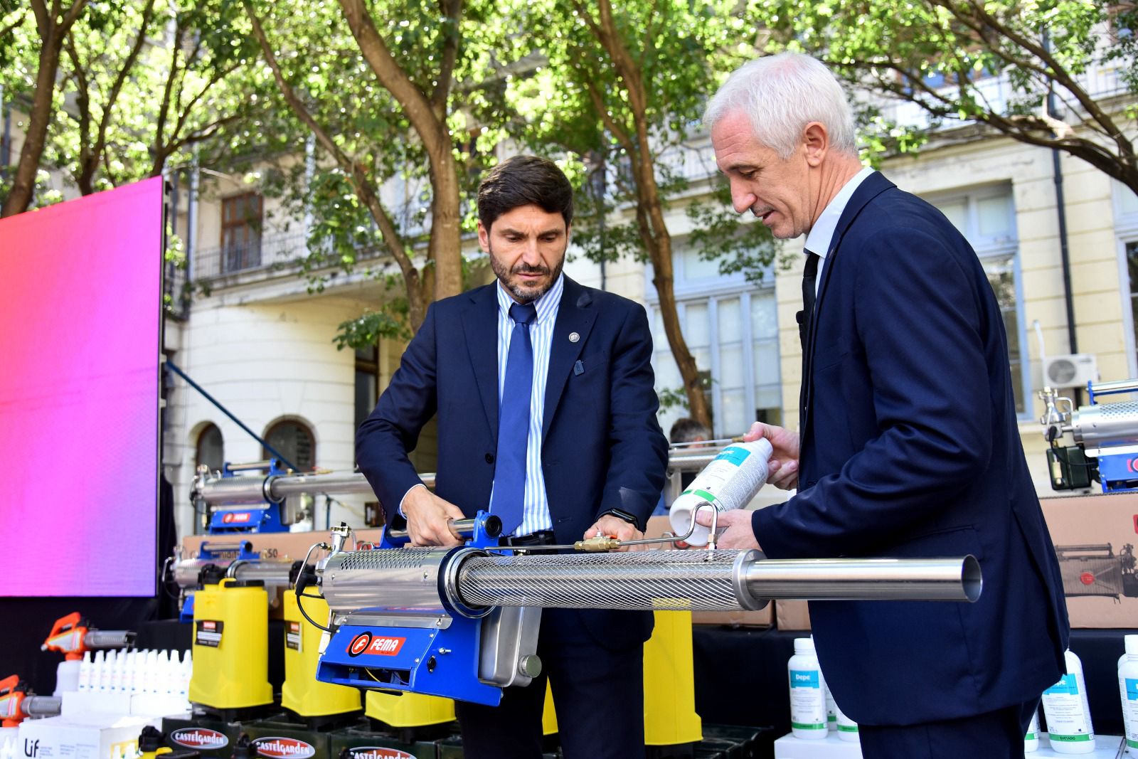 El gobernador Maximiliano Pullaro encabezó este lunes el acto de entrega de insumos y equipamiento para las acciones de prevención que se llevan adelante en el marco del programa Objetivo Dengue en 120 localidades de los departamentos Rosario, Caseros, Constitución, San Martín, San Jerónimo, San Lorenzo, Iriondo y Belgrano.