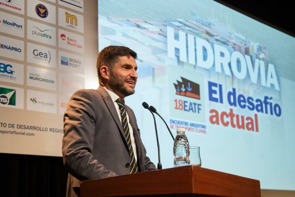 El gobernador Maximiliano Pullaro encabezó este martes en Rosario la apertura del 18° Encuentro Argentino de Transporte Fluvial (EATF), que se congrega este año bajo el título “Hidrovía: El desafío actual”, organizado por el Instituto de Desarrollo Regional Rosario. El evento se desarrolló en la sede de la Bolsa de Comercio local.
