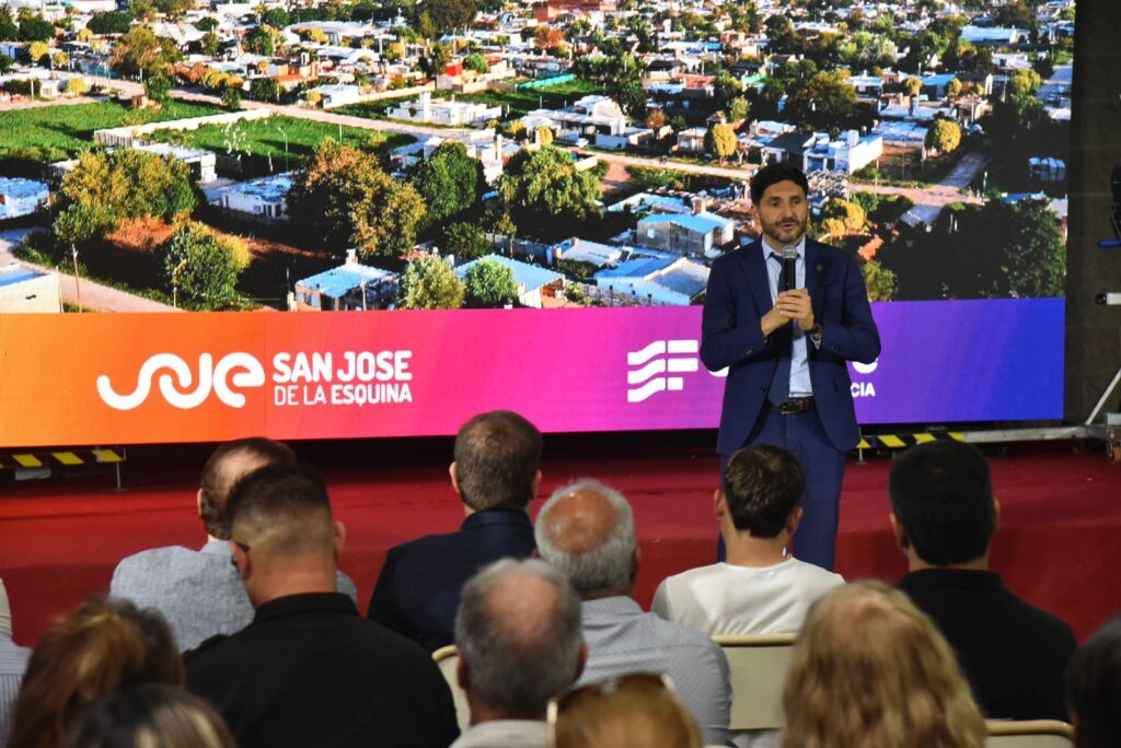 El gobernador Maximiliano Pullaro estuvo el viernes por la tarde en San José de la Esquina, donde firmó junto al presidente comunal Ezequiel Ruani un acuerdo por una serie de obras para la localidad que fue recientemente declarada ciudad y el año próximo elegirá intendente y concejales.