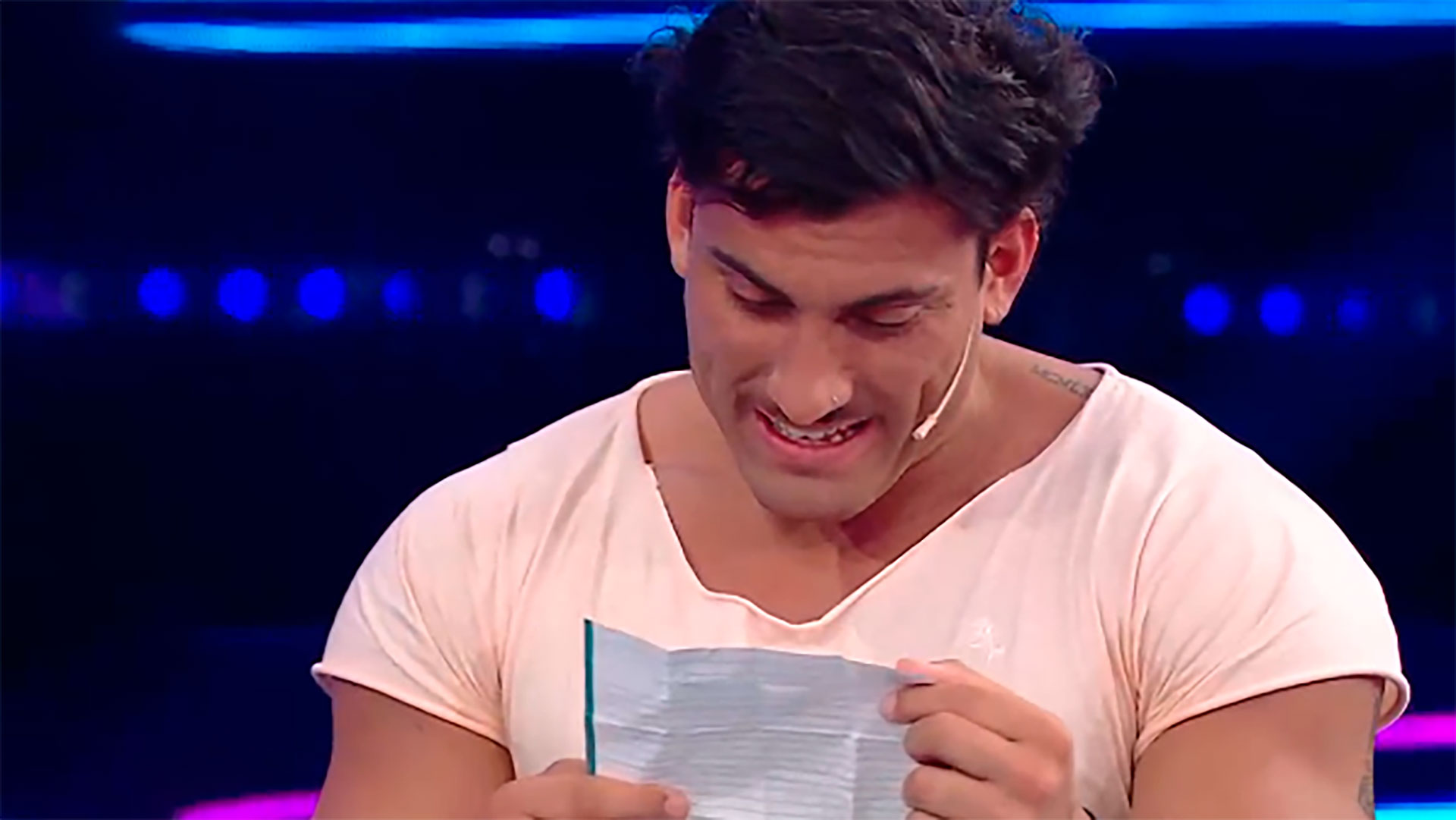 En la última gala, con el primer participante eliminado en el estudio de Telefe, Santiago Del Moro le entregó el mensaje de su madre. El joven de 21 años comenzó a leerla en voz alta para que todos sepan de que se trataba el polémico papel que había ingresado a la casa sin el permiso de nadie y en contra de las reglas del juego.