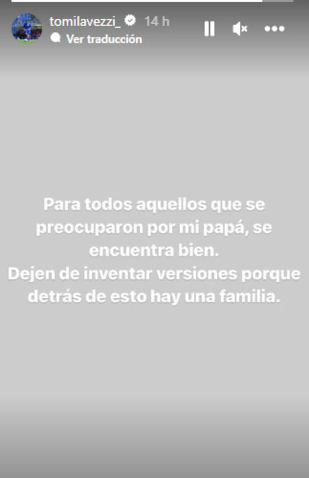 Tomás Lavezzi, hijo de Ezequiel Lavezzi, rompió el silencio sobre la salud del Pocho, quien fue internado en Uruguay por un confuso episodio y, pidió que “dejen de inventar”.