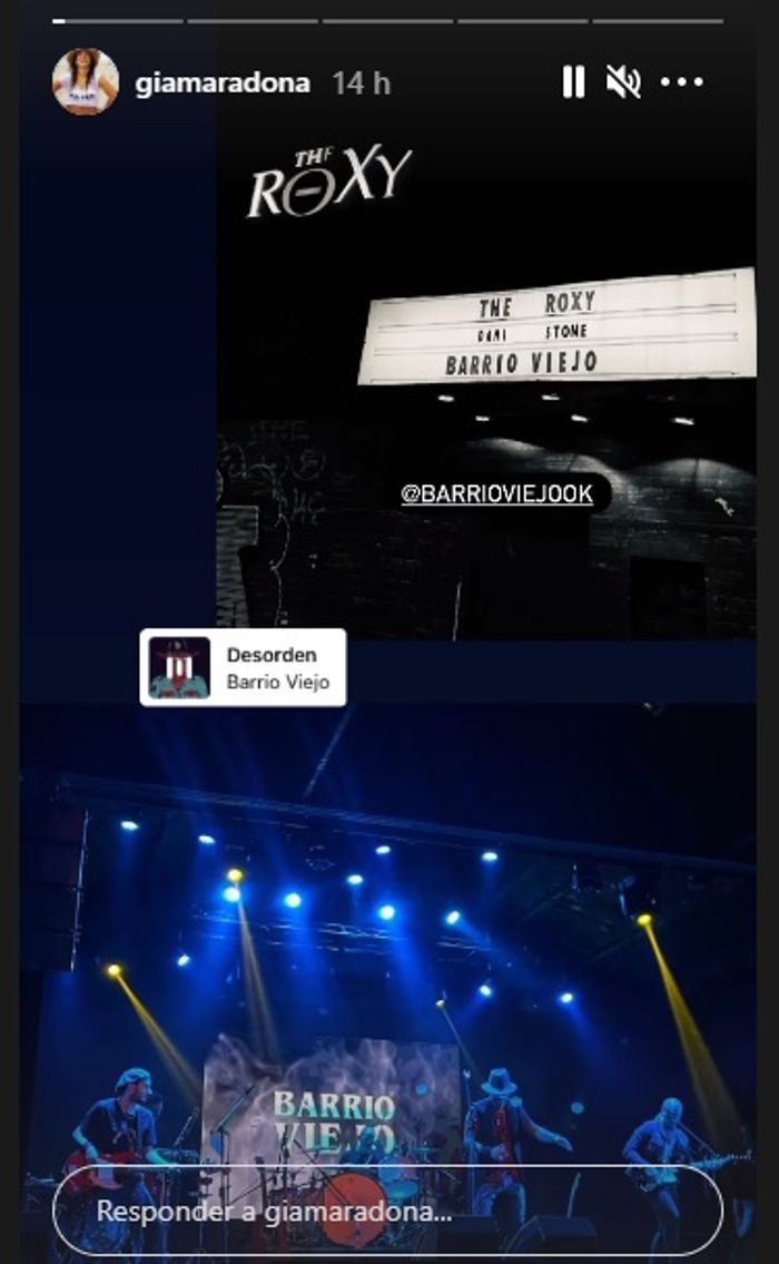 Gianinna publicó en sus historias una imagen del show que el grupo de rock dio en un boliche de Palermo.