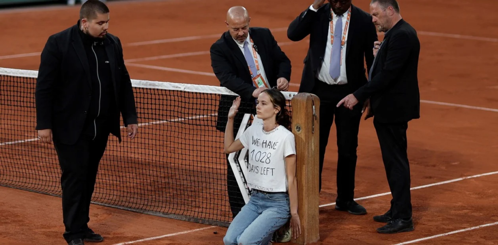 Hubo una sorpresa el court central de Roland Garros y no tuvo que ver con el tenis, sino con el cambio climático. Es que ese era el reclamo que motivó a Alizé, una joven de 22 años que entró a la cancha durante el partido que disputaban el noruego Casper Ruud y el croata Marin Cilic, por una de las semifinales del torneo de hombres.