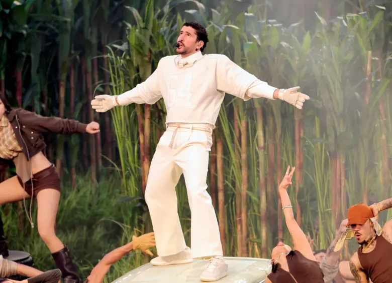 El espectáculo, que se presentó con la estética de un videoclip cinematográfico en vivo, comenzó con Bad Bunny surgiendo entre cañaverales montados sobre el césped, rodeado de figuras típicas de la isla como campesinos con sus tradicionales pavas (sombreros de paja) y ancianos jugando al dominó. “¡Qué rico es ser latino!”, fue el grito con el que el artista, vestido íntegramente de blanco, dio inicio a un setlist que recorrió sus mayores éxitos, empezando por una enérgica versión de Tití me preguntó.¿