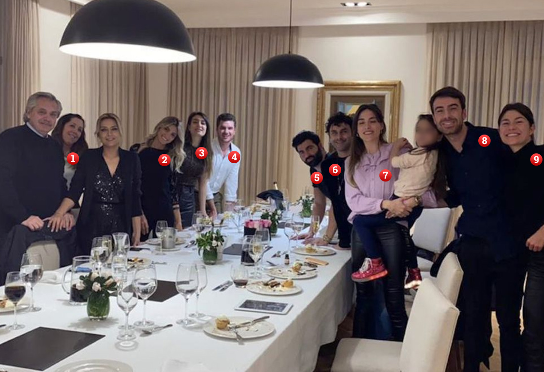 Las nueve personas que ingresaron al chalet de la Quinta de Olivos el 14 de julio del año pasado, cuando festejó su cumpleaños la primera dama Fabiola Yañez y regían las medidas más restrictivas por la pandemia de coronavirus.