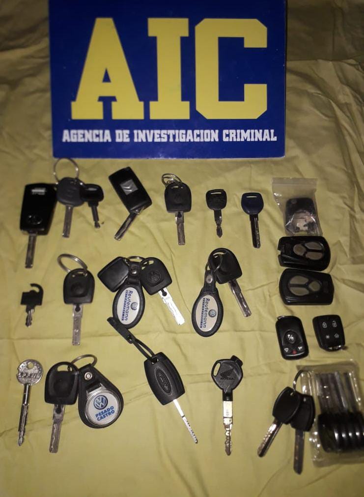 Los procedimientos fueron en calles Pte. Quintana 200, Convención 3600, Garibaldi y Alsina, Sáenz Peña 1600 de Funes, allí se trasladó a Sofía Juana H. (20), y Rodrigo R. (28) y se incautó 1 pistola calibre 9 mm., dinero, una Toyota Hilux, un VW Gol Trend, y un VW Gol.; Rondeau 1900 de la localidad de Funes. Los efectivos hallaron documentación de vehículos y anotaciones de interés, gran cantidad de llaves de ignición de distintos vehículos, una netbook y un revólver calibre 22 con 2 vainas servidas y 3 proyectiles intactos del mismo calibre. En un departamento en Corrientes al 1900, además, se incautaron $52.890 y U$D 2414 dólares, más un cargador de 9mm. Otros de los allanamientos fueron en la zona de Vía Honda.
