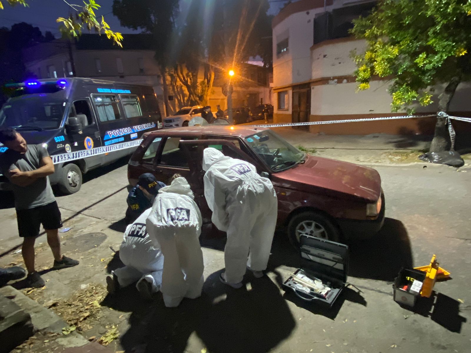 Los agentes detuvieron al vehículo en la esquina de Iguazú y Pasaje Rossini. Al dar con el auto que había evitado parar ante los policías, encontramos que había dos hombres en el Fiat Uno que llevaban una ametralladora escondida debajo del asiento del copiloto.