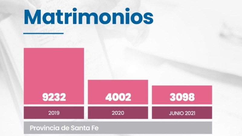 El subsecretario del organismo, Francisco Gabriel Dallo, señaló en este sentido que “en el primer semestre de este año se tramitaron 3.098 matrimonios”.
