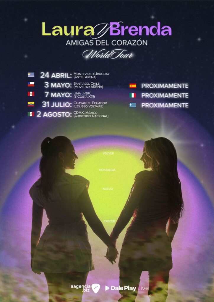 El “Amigas del Corazón World Tour” comenzará el 24 de abril de 2026 en Montevideo y ya tiene confirmadas presentaciones en Chile, Perú, Ecuador y México, con más fechas previstas en Europa, incluyendo España, Italia y Grecia. Las entradas estarán disponibles desde el 12 de febrero.