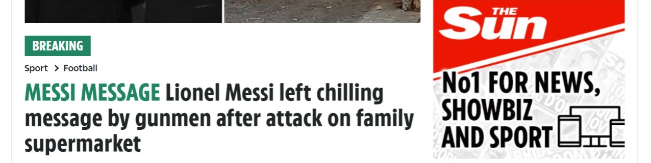 Uno de los primeros en exponer la situación a nivel internacional fue el periódico británico The Sun, que en su portada explicó: “Messi fue amenazado tras un ataque a tiros contra el supermercado de la familia de su esposa”.