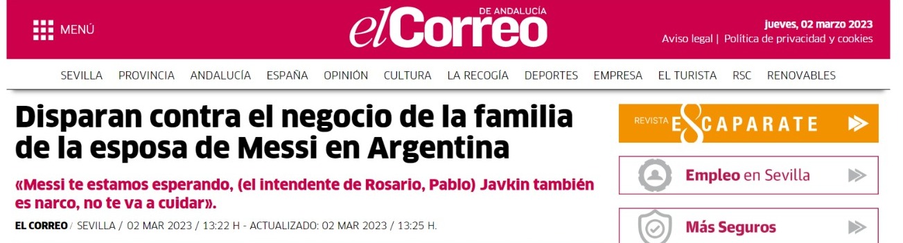 Por otra parte, en España también se dieron repercusiones por lo ocurrido contra el Supermercado Único. “Disparan contra el negocio de la familia de la esposa de Messi en Argentina”, sostuvo El Correo de Andalucía.