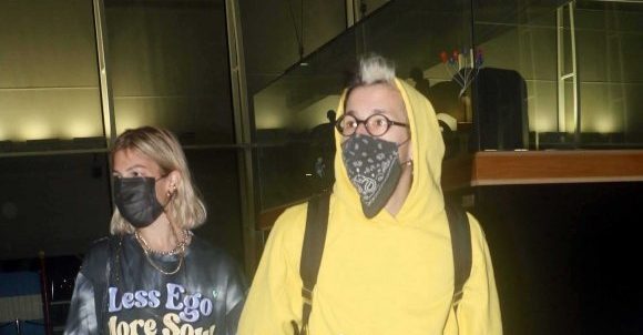 La pareja arribó temprano para hacer el check in y desde que bajaron del vehículo que los llevó hasta que pasaron a una zona privada se mostraron con buena onda.