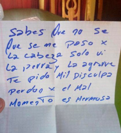 Martín Masi, el dueño de Dulce, había compartido en sus redes sociales imágenes y videos del sospechoso, quien se llevó a la cachorra el sábado a la tarde. Después de varios días de una intensa -viral- búsqueda, el delincuente se arrepintió y volvió a llevarla con su familia. “Sabés que no se qué se me pasó por la cabeza. Solo vi a la perra y la agarré. Te pido mil disculpas. Perdón por el mal momento, es hermosa”, redactó.