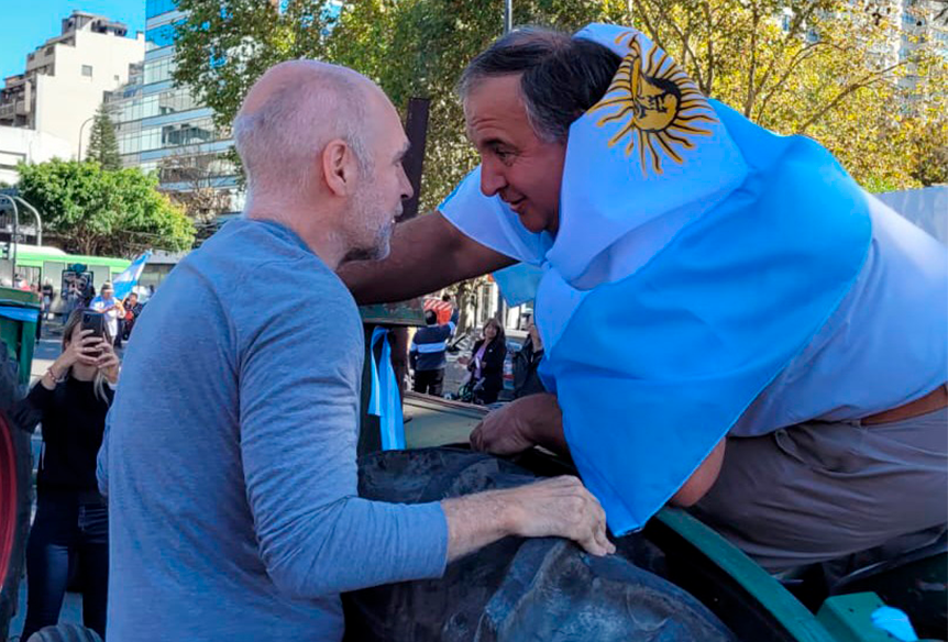 El jefe de Gobierno porteño, Horacio Rodríguez Larreta, participó este sábado del “tractorazo”, la marcha que realiza el sector del campo. La movilización, que comenzó sobre la Avenida 9 de Julio, finalizará en Plaza de Mayo.
