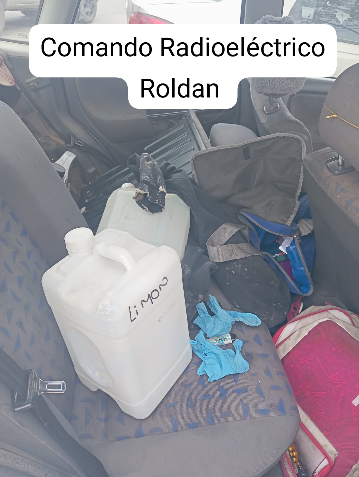 Por lo que se pudo reconstruir, los apuntados tras iniciar la quema, se dieron a la fuga hacia la localidad de Roldán. Los mismos se dirigieron en un vehículo color blando marca SEAT, al ser reportado un llamado al 911, personal del comando radioeléctrico se dirigió hacia Roldán y lograron identificarlos en la intersección de las calles Buenos Aires y Sarmiento tras un intento de evasión, finalmente pudieron reducirlos en la zona de la ruta A012 y ruta 9.