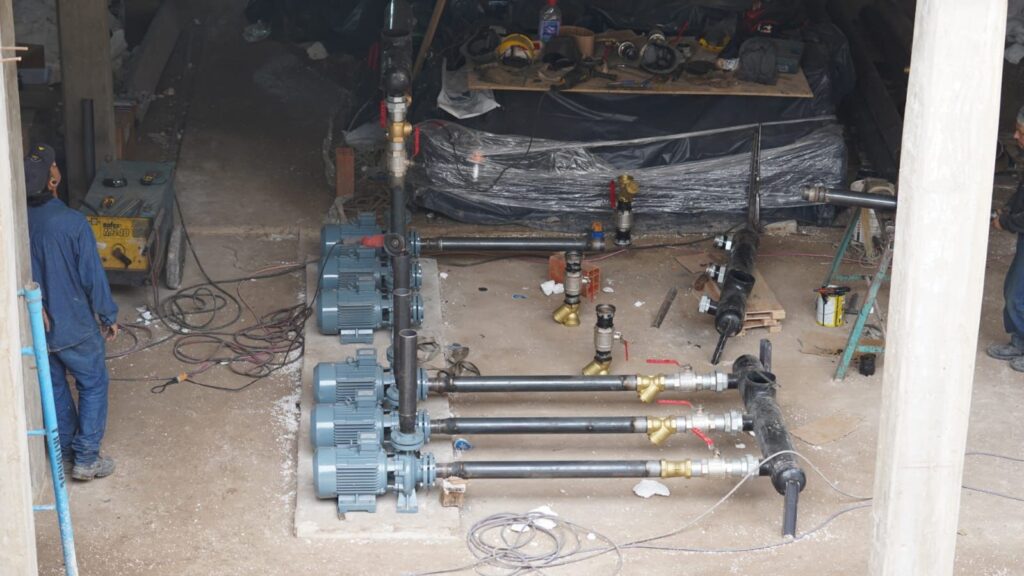 - En el subsuelo ya se colocaron siete filtros y se montaron las calderas del sistema hidráulico.