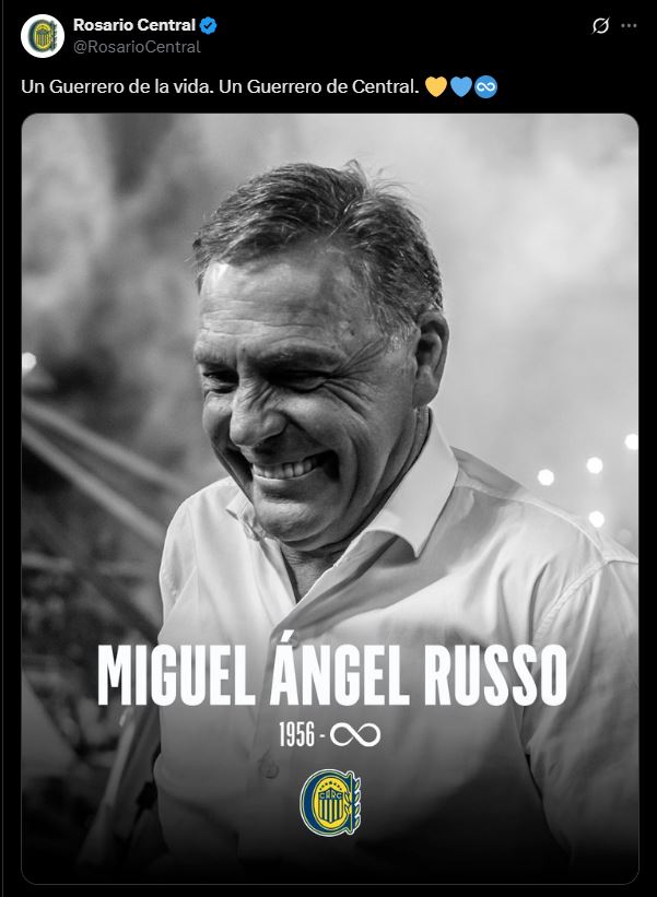 Con profundo pesar, el Club Atlético Rosario Central recibió la terrible noticia del fallecimiento de Miguel Russo, figura emblemática del fútbol que dejó huella innegable en nuestra historia y en los corazones de los hinchas.