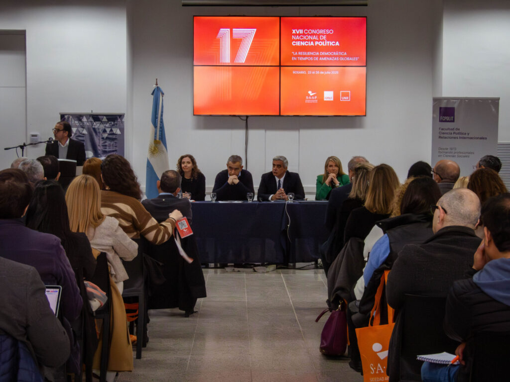 Del 23 al 26 de julio, la Facultad de Ciencia Política y Relaciones Internacionales de la Universidad Nacional de Rosario es escenario del XVII Congreso Nacional de Ciencia Política, que se desarrolla bajo el lema “La resiliencia democrática en tiempos de amenazas globales”.