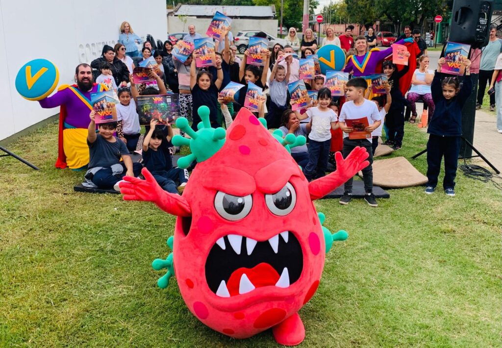 Previamente, participaron de una intervención artística que retoma el universo narrativo de Vax Team: una historia en la que los virus y bacterias son los villanos, y los chicos y chicas, al vacunarse, se transforman en superhéroes que se suman a un equipo para proteger a la comunidad.