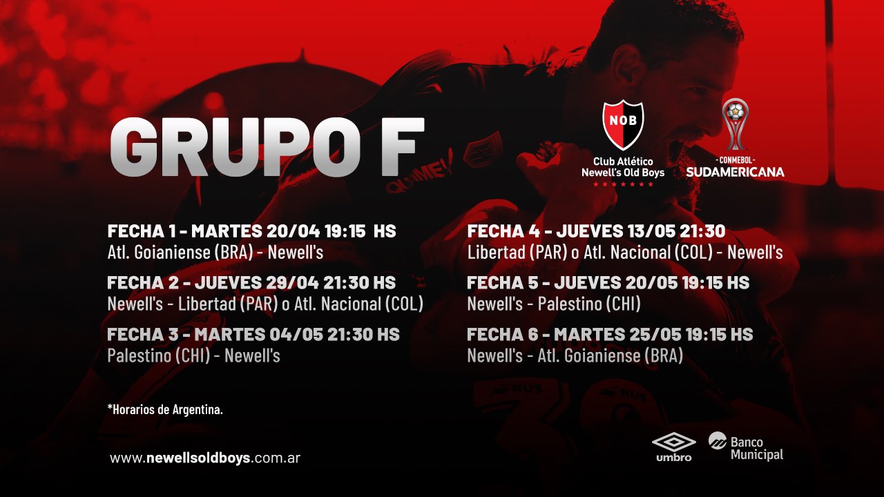 Se sorteó el fixture de Newell’s para la próxima Copa Sudamericana este lunes. Tras confirmar que integrará grupo con Athlético Goianiense de Brasil, Palestino de Chile y Libertad de Paraguay o Atlético Nacional de Colombia. Los encuentros serán entre semana desde el 20/4 al 25/5.