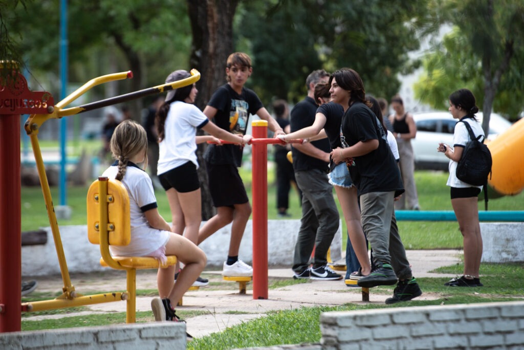 En la plaza que queda a 50 metros de la escuela, al llegar —pasado el mediodía, con más de 35 grados— los chicos de la institución en la que se había producido la tragedia compartían un rato sentados en los juegos, en los bancos, e intentaban, cada uno a su forma, recordar cómo había pasado lo que había pasado. Tres alumnas de primer año, compañeras de Ian, contaron que se había acercado hasta el baño y que, justo en ese momento, Gino, de 15, estaba preparando la escopeta.