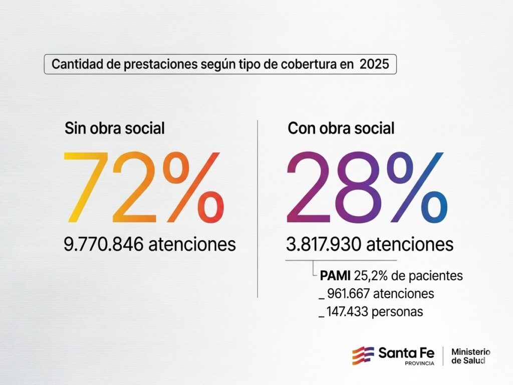 El informe también destaca una migración masiva de pacientes hacia el sector público. Entre 2021 y 2025, las atenciones en el sistema santafesino saltaron de 9,1 millones a 13.588.776 anuales.